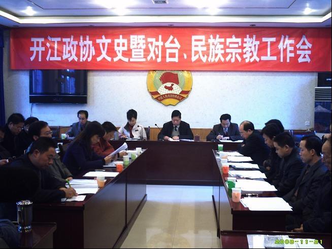 1121上午,開江縣政協召開文史暨對臺、民族宗教工作會。來自開江縣有關部門負責人、各鄉鎮政協聯絡組長、民族宗教方面代表和長期以來熱心征集、積極撰寫文史資料的各界人士,共計52人出席會議。開江縣政協主席金本來到會作了重要講話。會議由縣政協副主席張念一同志主持。